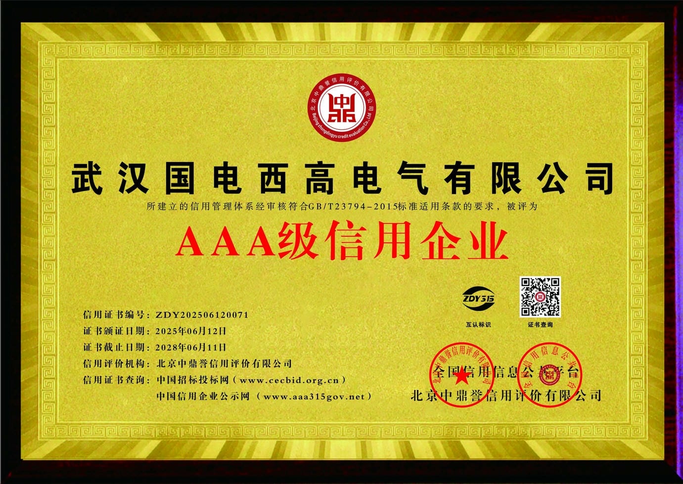 AAA級信用企業證書