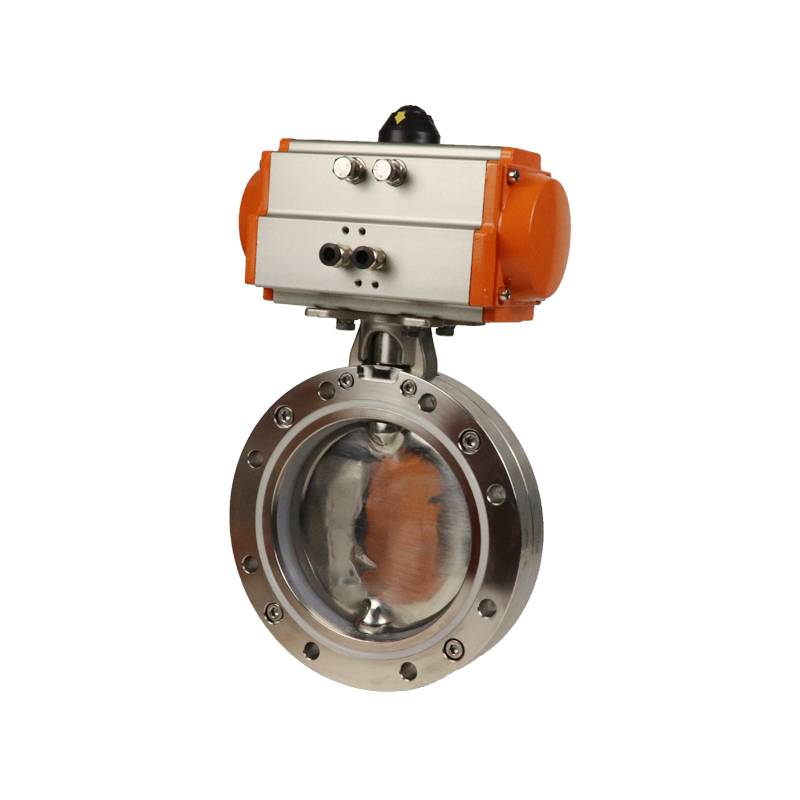 蝶閥配上氣動執(zhí)行器。氣動執(zhí)行器的執(zhí)行速度相對較快,并且不需要工人親力親為,在很大程度上節(jié)約了人力資源以及時(shí)間。蝶閥的蝶板安裝于管道的直徑方向。在蝶閥閥體圓柱形通道內(nèi),圓盤形蝶板繞著軸線旋轉(zhuǎn),閥門初始位置根據(jù)實(shí)際需求而定,當(dāng)閥門由初始位置旋轉(zhuǎn)90°后即為一個動作結(jié)束(由開到關(guān),或由關(guān)到開),反之為另外一個動作(由關(guān)到開,或由開到關(guān))結(jié)束。