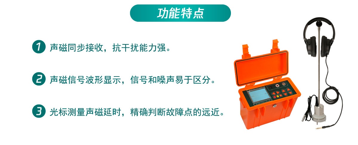 · 配合高壓信號發生器使用,提供聲磁波形顯示的聲磁同步法,對故障點進行精確定點;