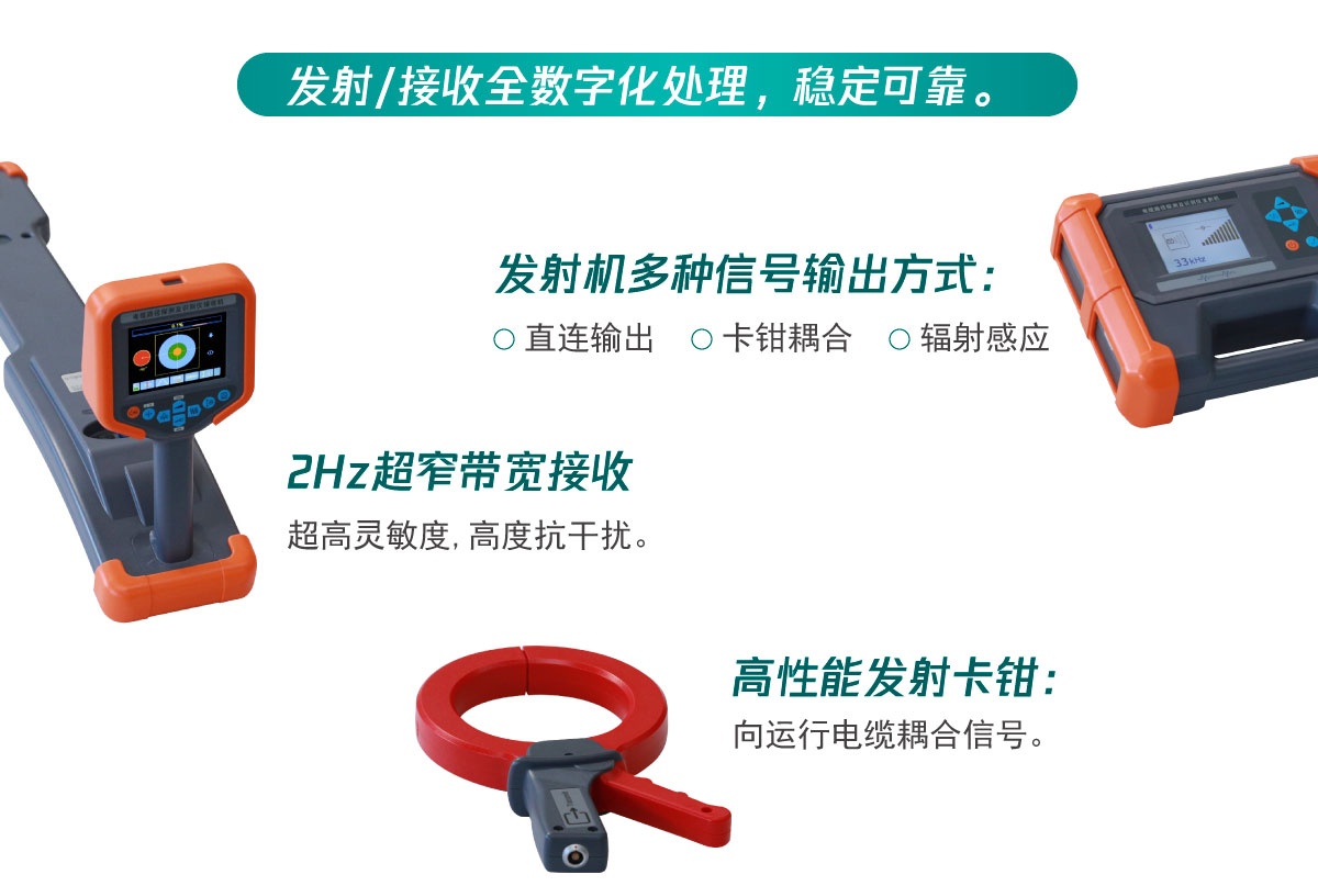13,發射機多種信號輸出方式:直連輸出、卡鉗耦合、輻射感應。