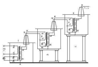 串級(jí)試驗(yàn)變壓器的接線如下圖: