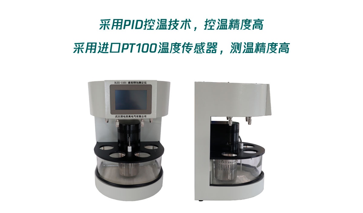 測試原理是將300ml試樣和30ml蒸餾水或合成海水混合,把圓柱形的試驗鋼棒全部浸在其中,在60℃下進行攪拌。通常試驗周期為24小時,但是根據合同雙方的要求,亦可長可短。試驗周期結束后,鋼棒銹蝕的痕跡和銹蝕的程度。