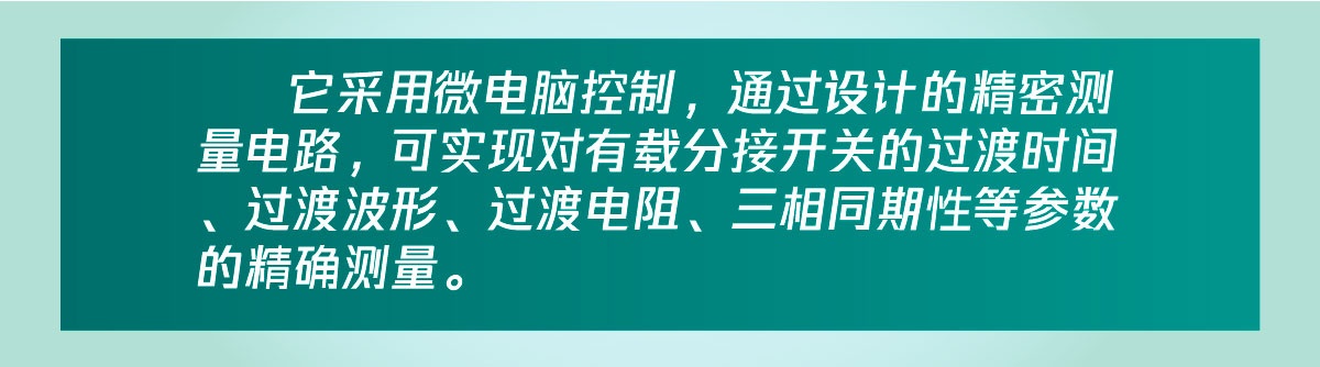 GDKC-2000B 變壓器有載開關(guān)測試儀,是用于測量和分析電力系統(tǒng)中電力變壓器及特種變壓器有載分接開關(guān)電氣性能指標(biāo)的綜合測量儀器。它采用微電腦控制,通過設(shè)計的精密測量電路,可實現(xiàn)對有載分接開關(guān)的過渡時間、過渡波形、過渡電阻、三相同期性等參數(shù)的精確測量。用戶可根據(jù)需要和現(xiàn)場條件,直接由分接開關(guān)引線進(jìn)行測量,也可由變壓器三相套管及中性點直接接線測量。