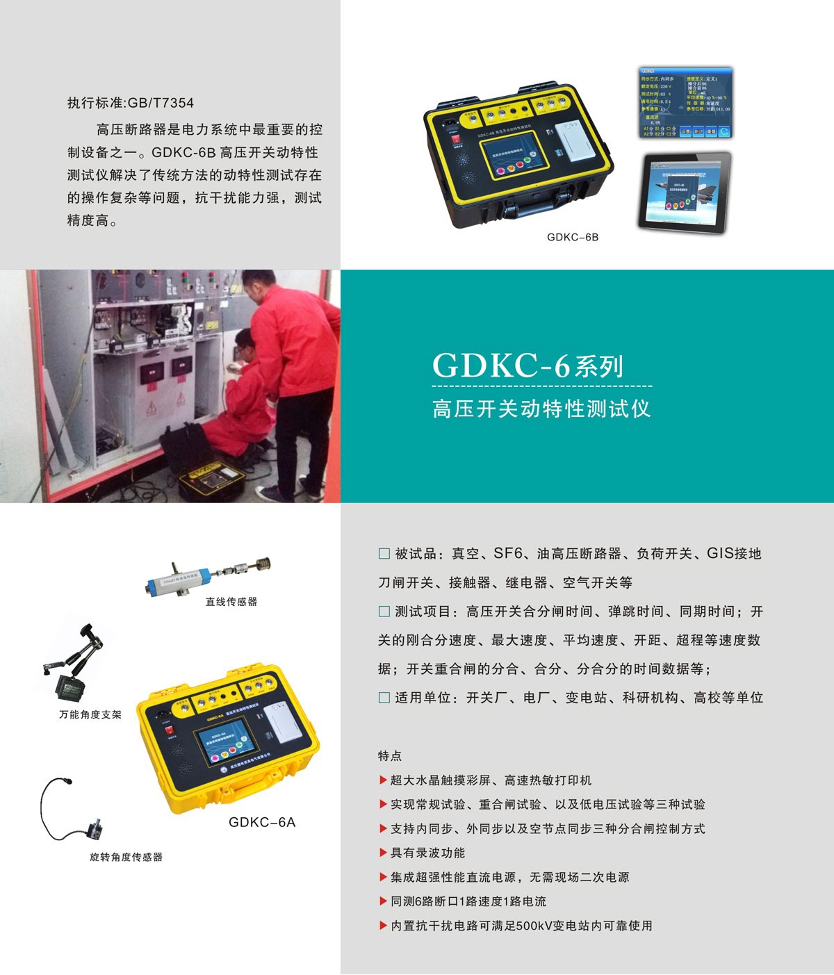 高壓斷路器是電力系統中最重要的控制設備之一。電網中高壓斷路器的運行數量最多,運行條件和技術要求比較復雜,其運行可靠性不僅關系到高壓斷路器本身,而且影響到其它設備乃至整個電網。因此,對高壓斷路器的動特性進行測試是一項很重要的工作。GDKC-6型高壓開關動特性測試儀解決了傳統方法的動特性測試存在的操作復雜等問題,具有抗干擾能力強,測試精度高的特性。