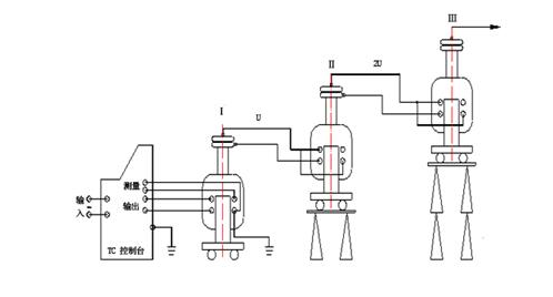 當三臺試驗變壓器作串級聯接時,則三臺容量之比為3:2:1,總容量同樣為第I臺容量,總電壓為三臺輸出電壓之和。