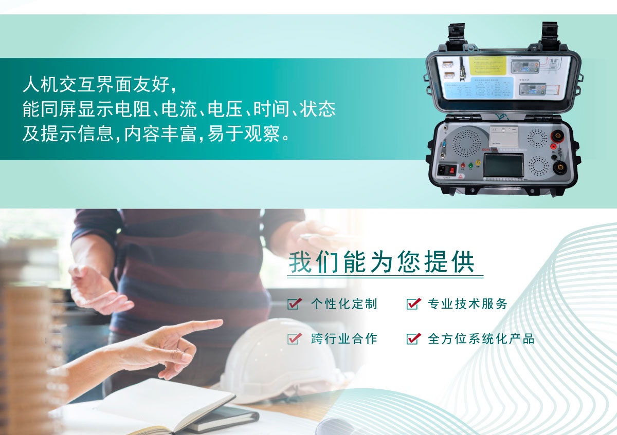 • 人機交互界面友好,能同屏顯示電阻、電流、電壓、時間、狀態(tài)及提示信息,內(nèi)容豐富,易于觀察