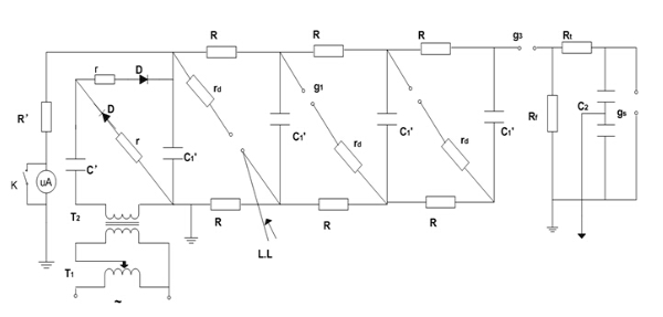 1.熟悉沖擊電壓發生器的線路、元件和結構。
