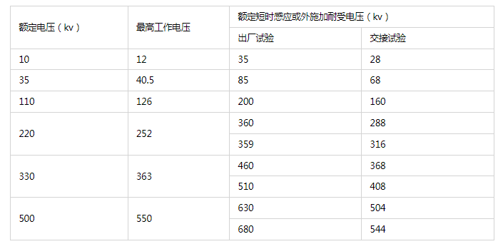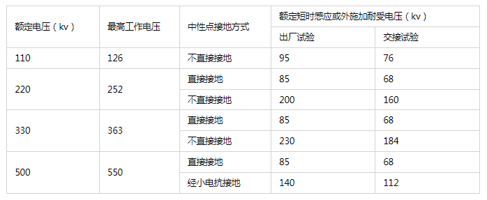 變壓器感應(yīng)耐壓分為長(zhǎng)時(shí)感應(yīng)耐壓和短時(shí)感應(yīng)耐壓,短時(shí)感應(yīng)電壓是按照出廠值的80%施加,感應(yīng)耐壓耐受電壓的標(biāo)準(zhǔn)和分級(jí)絕緣變壓器中性點(diǎn)端子的額定耐受電壓如下表所示: