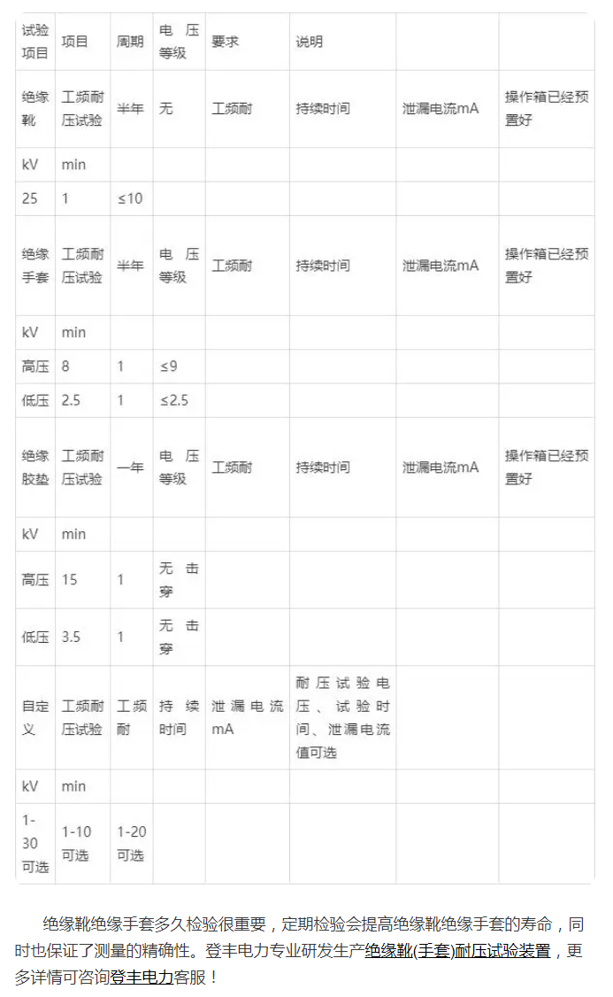 絕緣靴絕緣手套多久檢驗,接下來國電西高給出一個詳細的表格: