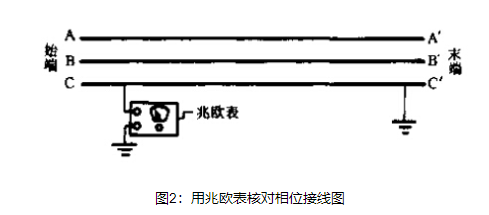 圖2是用兆歐表核對相位的接線圖。