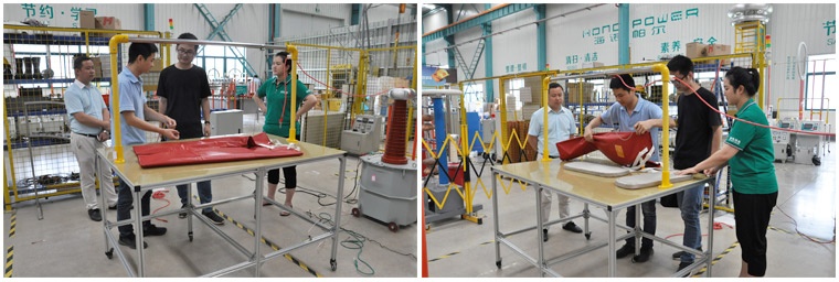 應客戶要求公司技術人員又對GDS-50絕緣繩耐壓裝置等相關設備做了模擬試驗,并對設備的參數調節等技術問題和客戶做了詳細的探討和交流。整個的考察工作,客戶對公司的技術服務和設備都十分滿意。