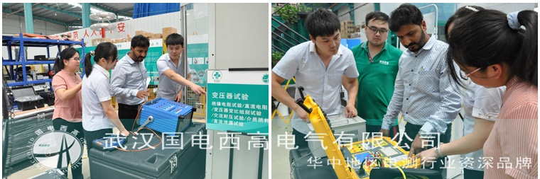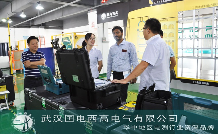 8月初,從印度遠道而來的客戶朋友,對我司的CT/PT 校驗儀、GDZG-300 直流高壓發生器、GDC-9560B 油色譜分析系統、GDWG-IV SF6 氣體檢漏儀等相關設備進行實地了解,并考察我司的整體規模實力。