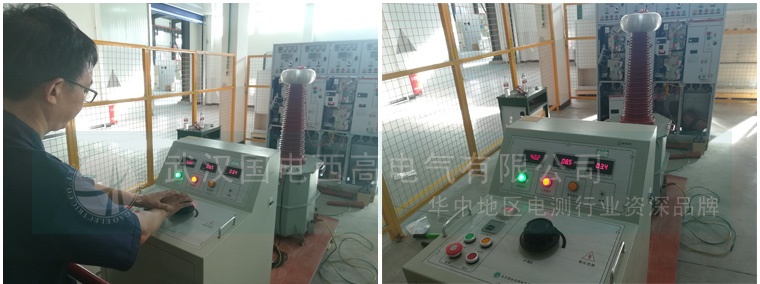 隨后,用其購(gòu)買(mǎi)的GDYD-15/150工頻耐壓試驗(yàn)裝置對(duì)現(xiàn)場(chǎng)的10kV開(kāi)關(guān)做耐壓試驗(yàn)。客戶按照標(biāo)準(zhǔn)升壓至42kV一分鐘無(wú)閃絡(luò),試驗(yàn)通過(guò)!