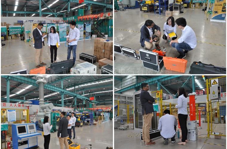 參觀完設備展區后,一行人來到生產車間進行考察,客戶對電纜故障測試儀、變比測試儀、介損測試儀、直流耐壓測試儀等產品的模擬演示都進行了現場觀摩,對其感興趣設備儀器的相關技術問題提出與我們詳細探討,我們表現出的專業知識水平令客戶十分滿意。