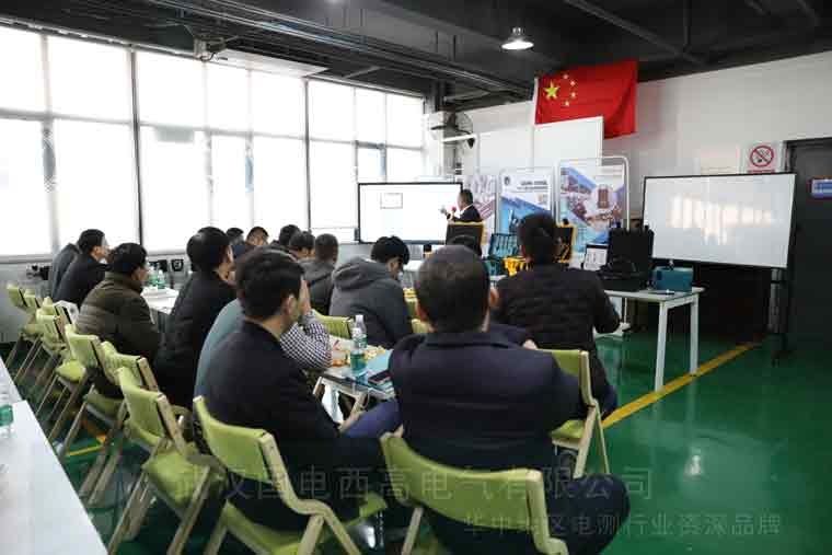 下午,學員們都在研發車間培訓參加培訓,由資深的技術工程師夏工為學員們培訓,關于電氣試驗的作用和意義、電氣設備試驗的技術和安全事項、總體要求等。